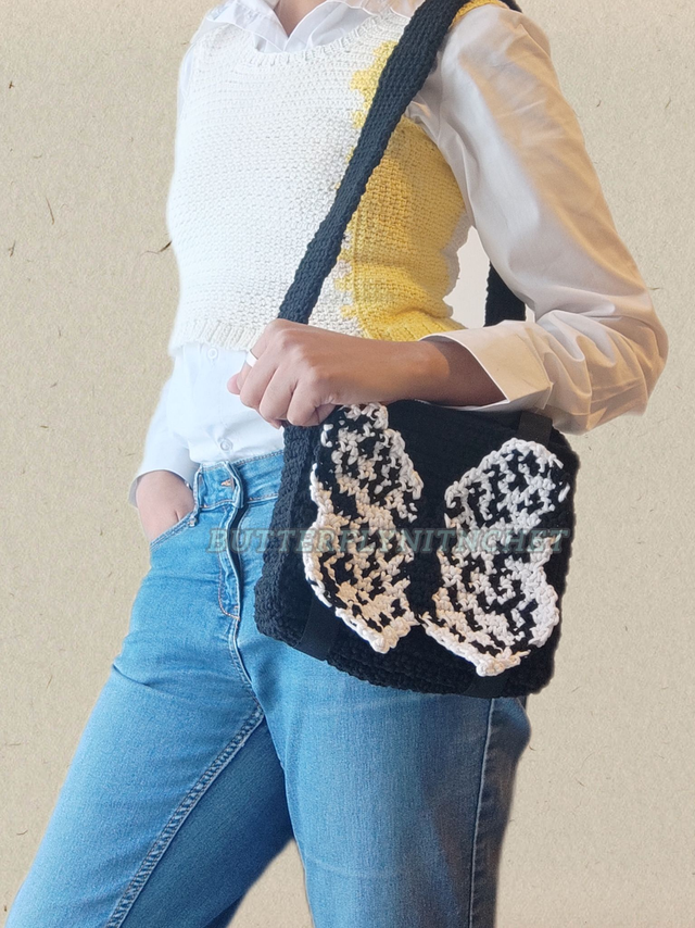 Découvrez notre sac minimaliste au crochet, conçu pour vous simplifier la vie : fini les placards remplis de sacs, vous avez maintenant un seul sac, mais qui change de couleur grâce à ses ailes de papillons !